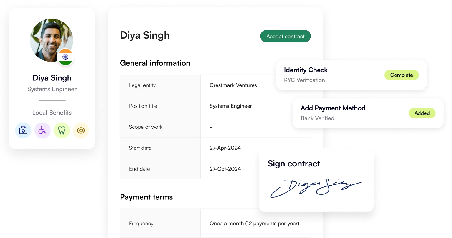 You need an EOR that gets payroll right every month and correctly calculates gratuity payments (typically 21 days of basic salary per year for the first 5 years of service).