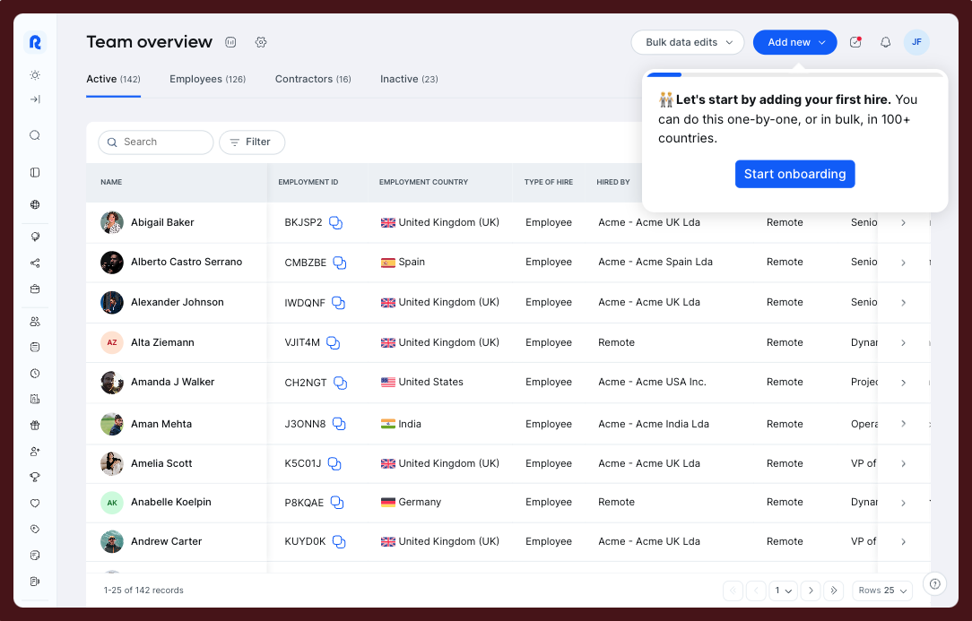 Remote is one of the few global EOR providers that owns and operates its own legal entity in the UAE, allowing them to directly manage local compliance, payroll, and visa sponsorship without third-party intermediaries. Their platform combines strong automation with built-in legal intelligence, and their UAE pricing is among the most transparent in the category. For companies already using Remote in other countries, expanding into the UAE feels operationally seamless thanks to unified workflows across contracts, onboarding, and payroll.