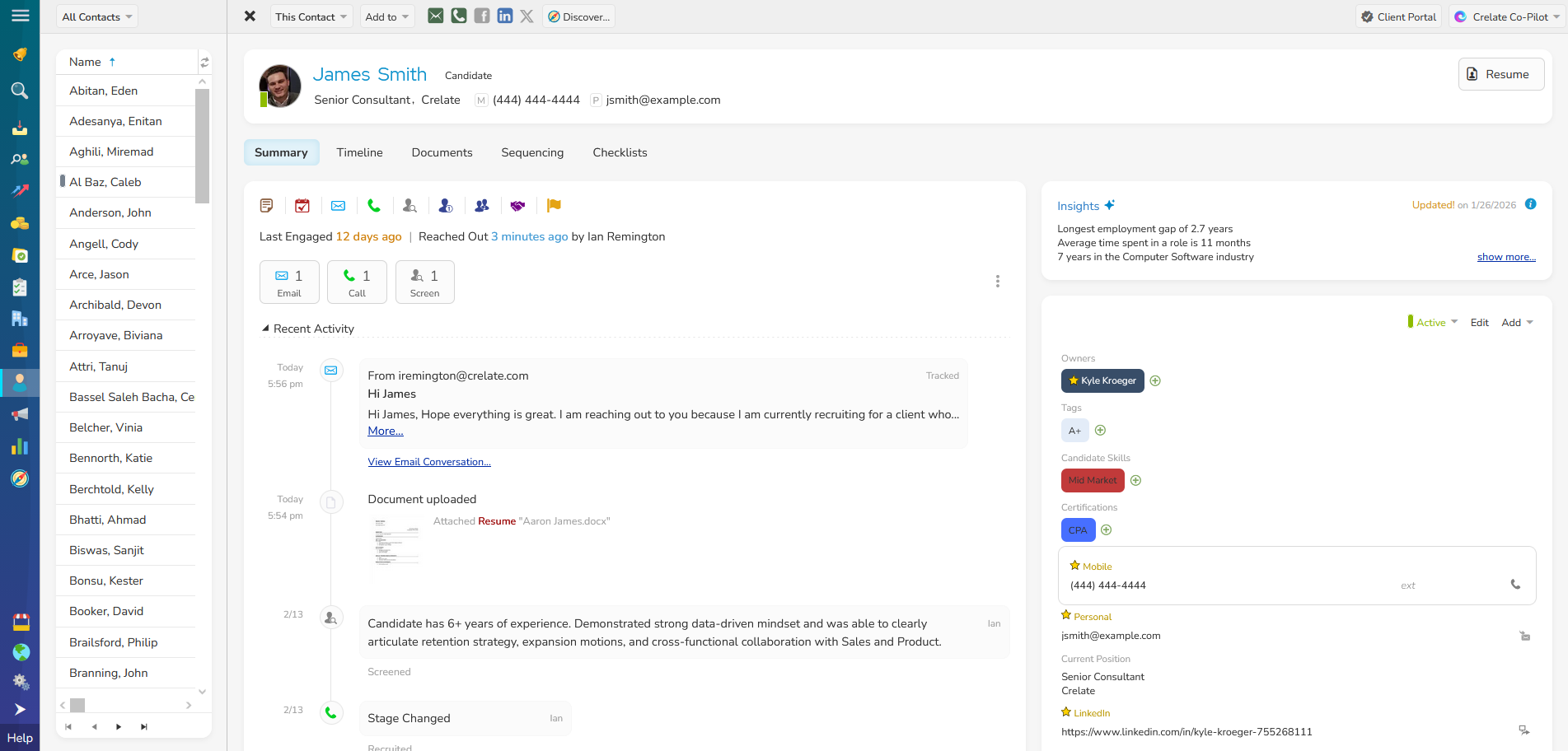 - Crelate allows direct communication with candidates through the system.
