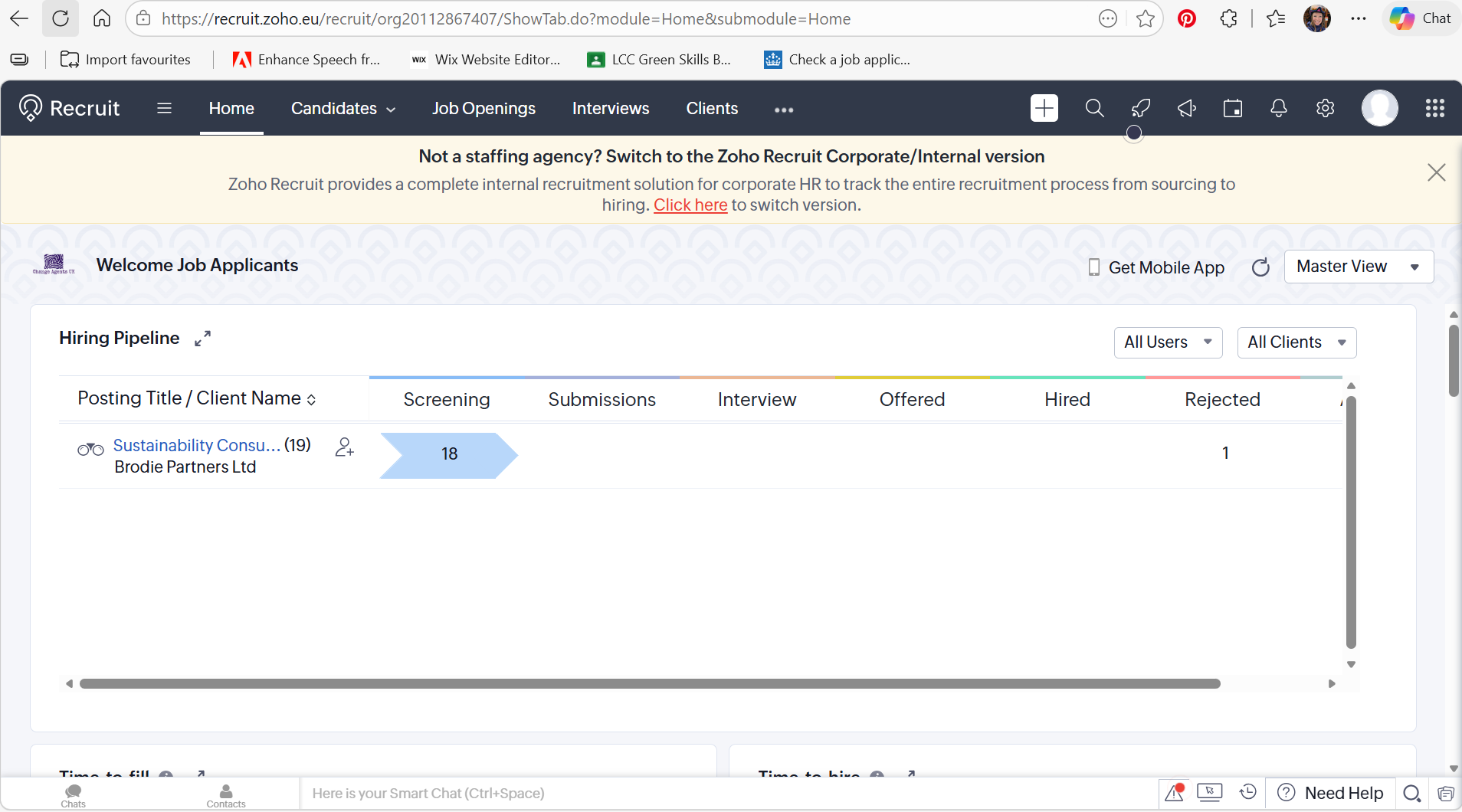 Zoho Recruit may not be a good fit for a one-person startup with no experience.