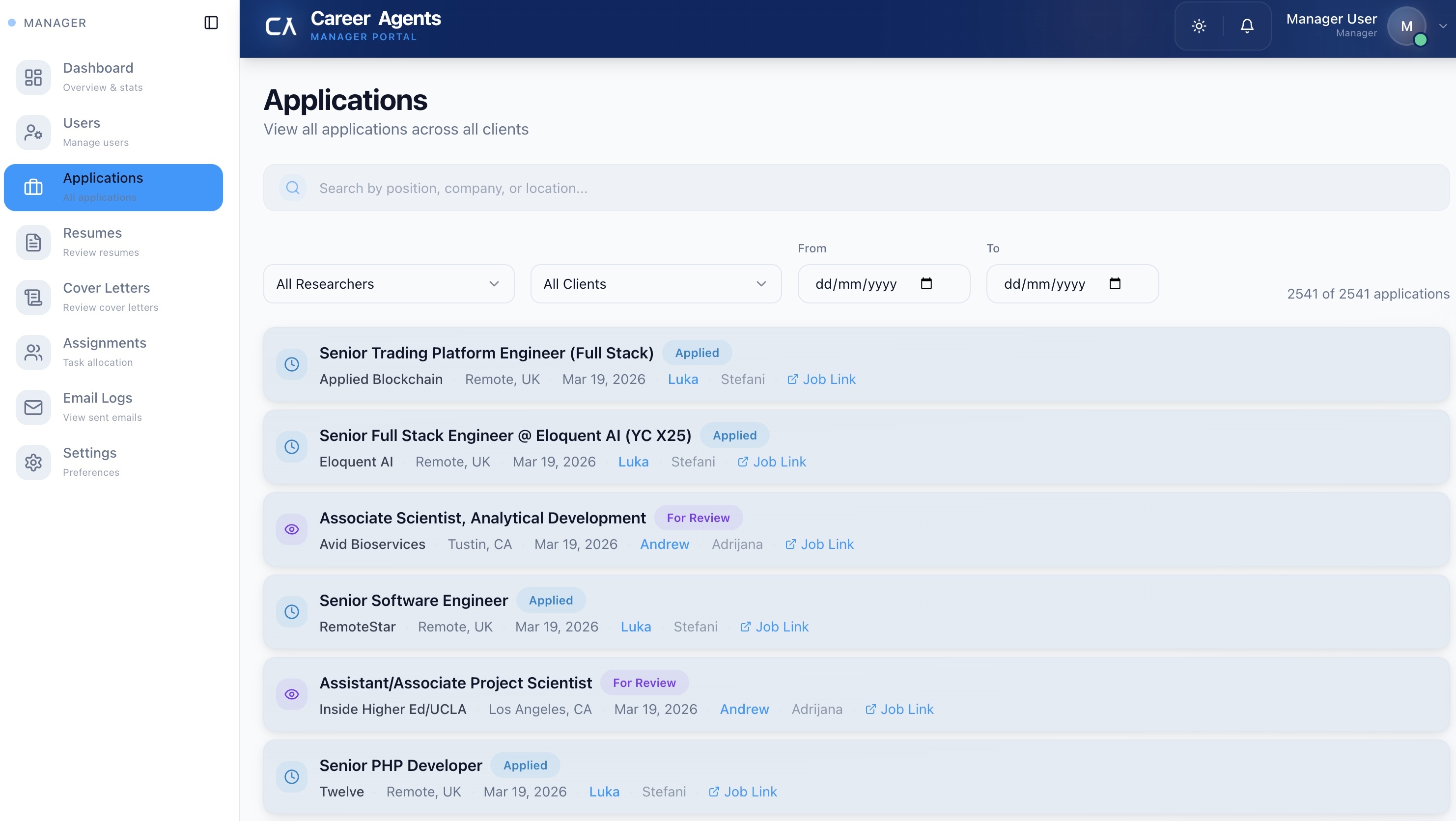 Dedicated career agents over automation