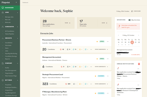 We use Pinpoint to advertise all of our roles across the globe. We use to create all adverts, interviews and communications with candidates. We also use this to run reports on statistics from this on our sources of applications and diversity and inclusion data